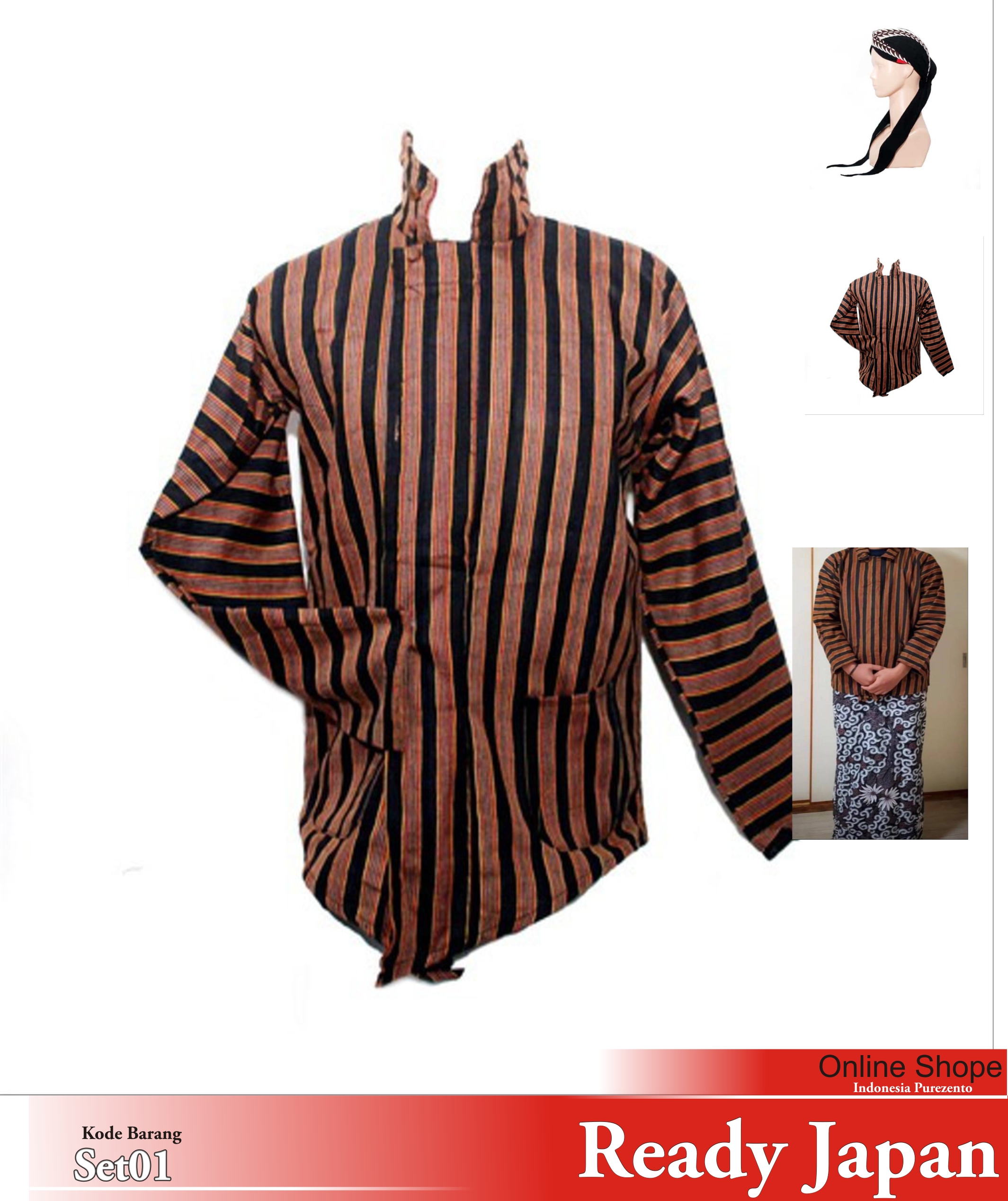 Surjan Merupakan pakaian adat khas Jawa yang sangat kental dengan budaya jawanya. Baju Jawa surjan lurik raja keong warna hitam, dan hijau