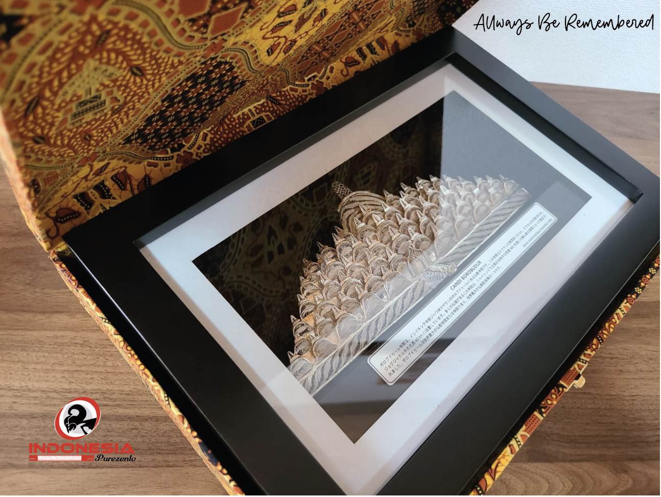 Merupakan salah satu produc terbaru dari indonesia purezento mengkombinasi antara bahan tembaga dengan finishing freme box sehingga menjadikan produc borobudur yang elegan dan mewah.