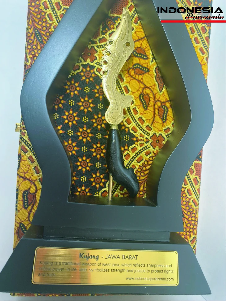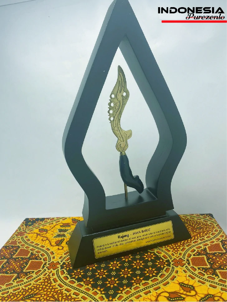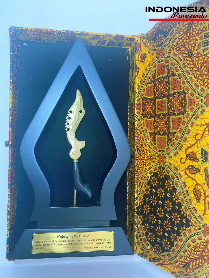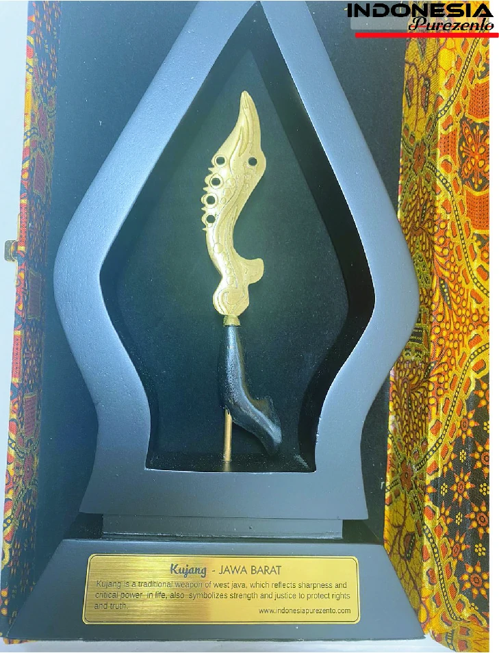 Miniatur kujang eksklusif ini adalah replika dari salah satu senjata unik dari daerah Jawa Barat, yang merefleksikan ketajaman dan daya kritis dalam kehidupan juga melambangkan kekuatan dan keberanian untuk melindungi hak dan kebenaran.