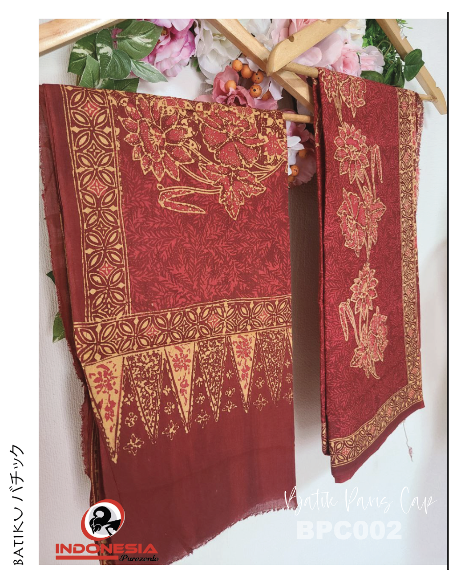 Kain Batik CAP Paris Premium sett Slendang, di buat oleh pembatik propesional kualitas Exsport barang sudah melalui tes QC sehingga sudah di jamin kualitasnya, Bahan batik masih berbau lilin yang mencirikan batik tulis tangan asli. barang yg kami jual masih dalam bentuk kain (belum jahit) motif limited edition. hanya tersedia 1 atau 2 pcs per motif