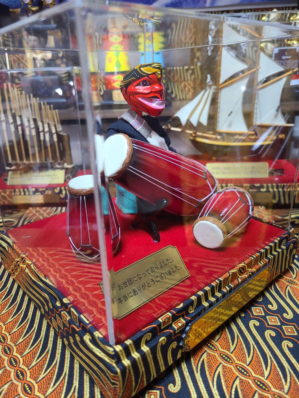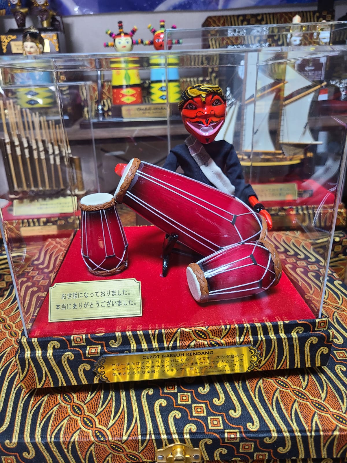 Perbaduan Miniatur Cepot hasil ukir tangan dari bahan kayu lame dan Miniatur Kendang dari bahan kayu dengan finishing eksklusif ditutup dengan Box Acrilic ini semakin menambah nilai budaya dan ke-khas-annya dari Jawa Barat.