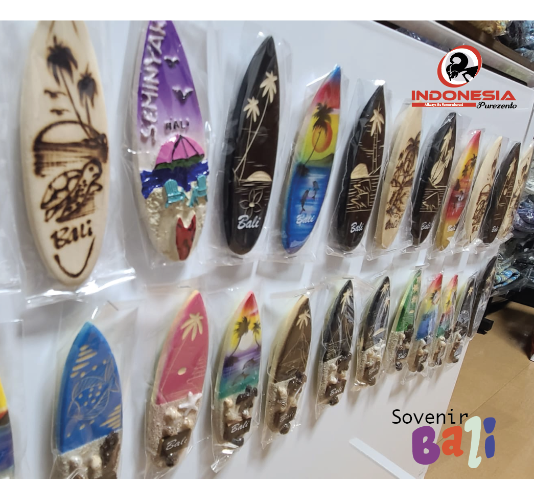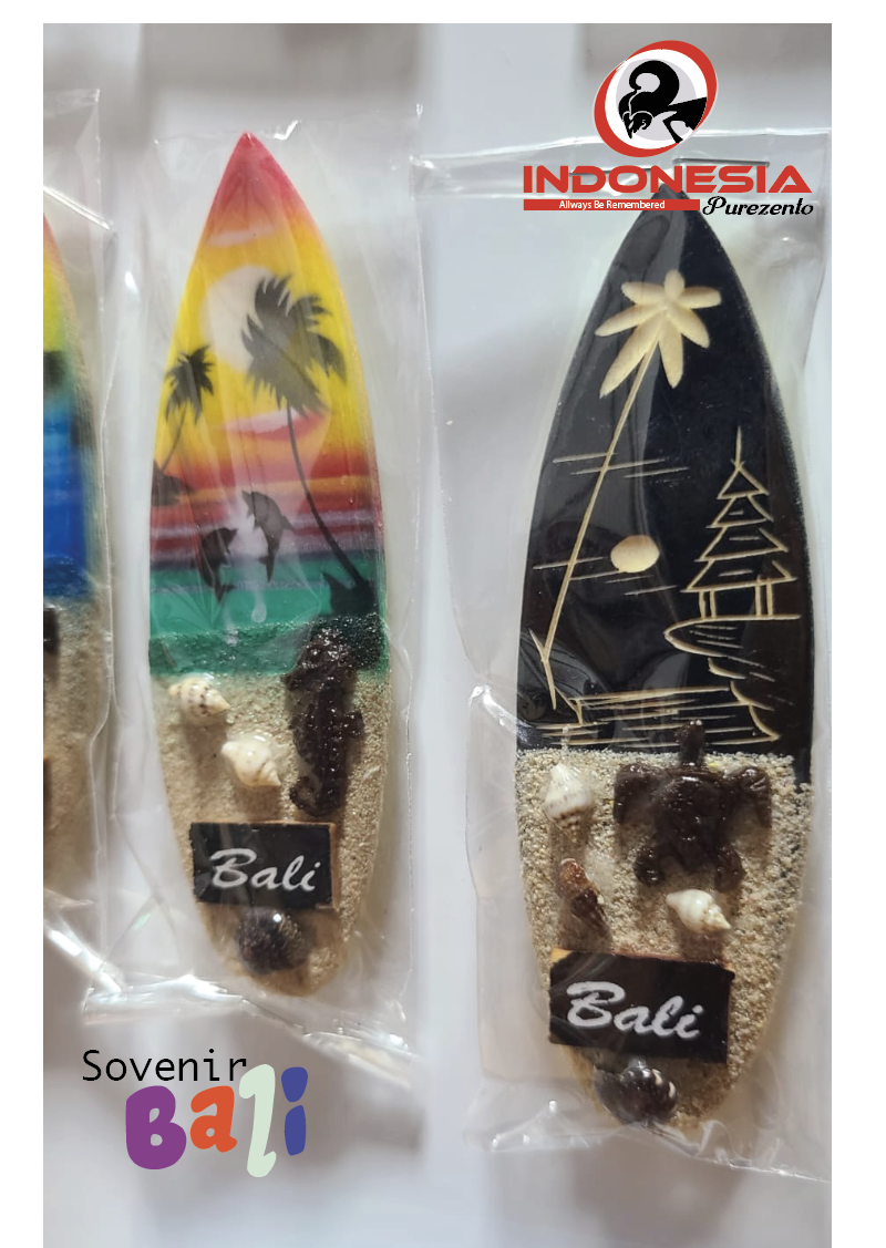 Magnet Kulkas Slancar Bali di buat langsung oleh pengraji bali dengan kualitas export. dari bahan kayu yang di ukir menyerupai papan slancar dan di finishing dengan macam macam motif khas bali.
