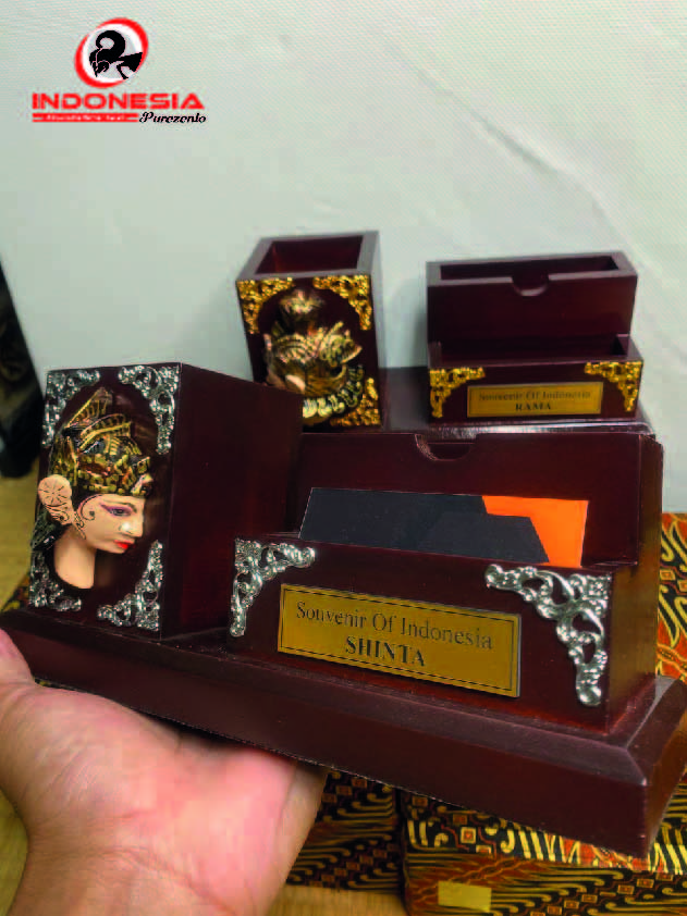 Merupakan salah satu produc terbaru dari IP sebagai pengganti pen Holder wayang logam, dengan tampilan yang Mewah tetapi masih terlihat Natural sangat cocok sebagi Cindramata, Oleh-oleh atau sovenir khas Indonesia.