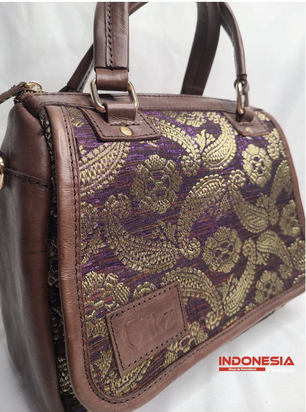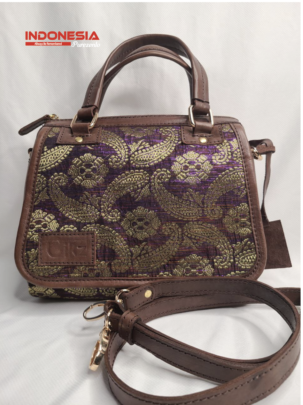 Tas Kulit Wanita Kombinasi Tenun
