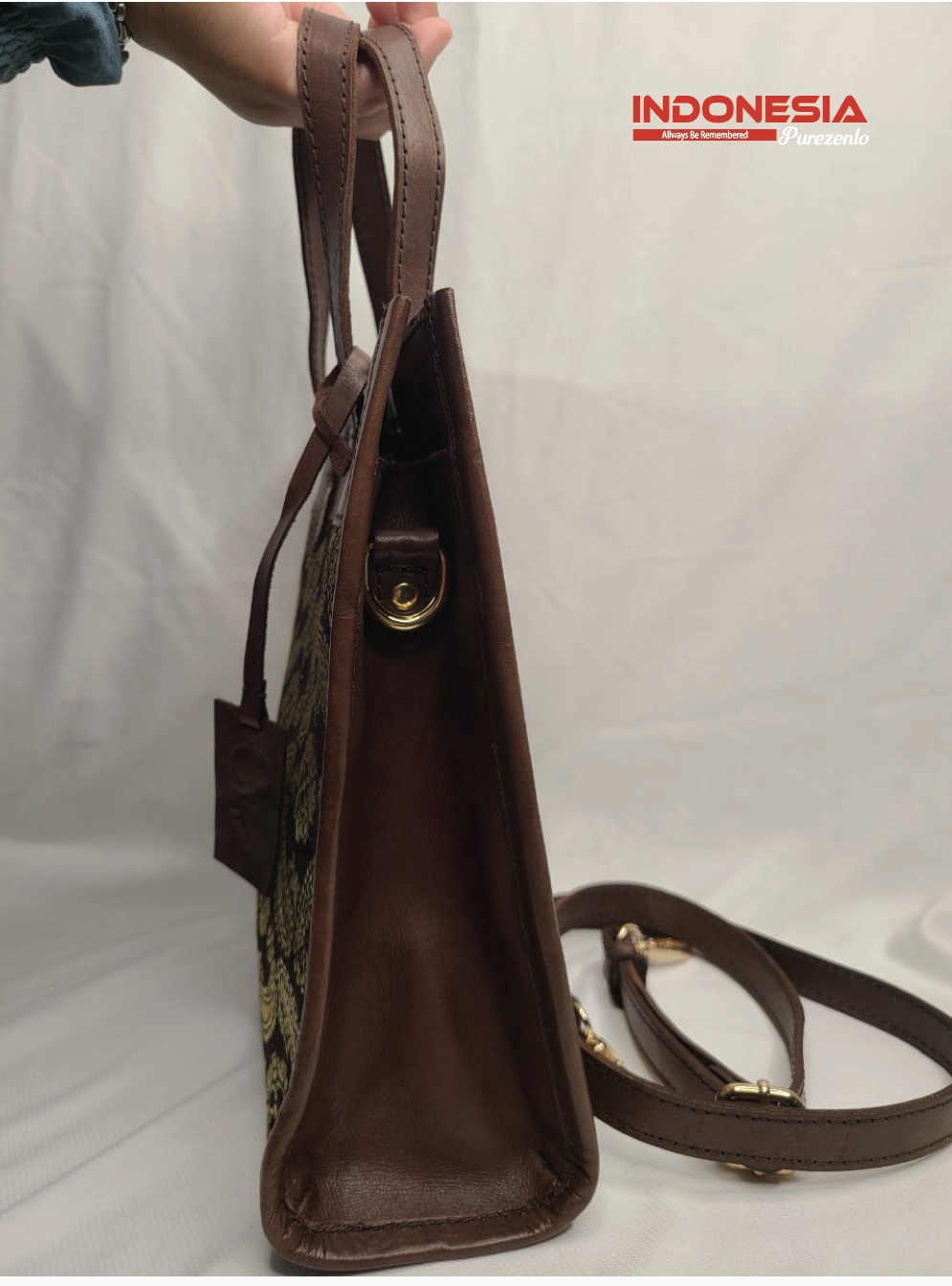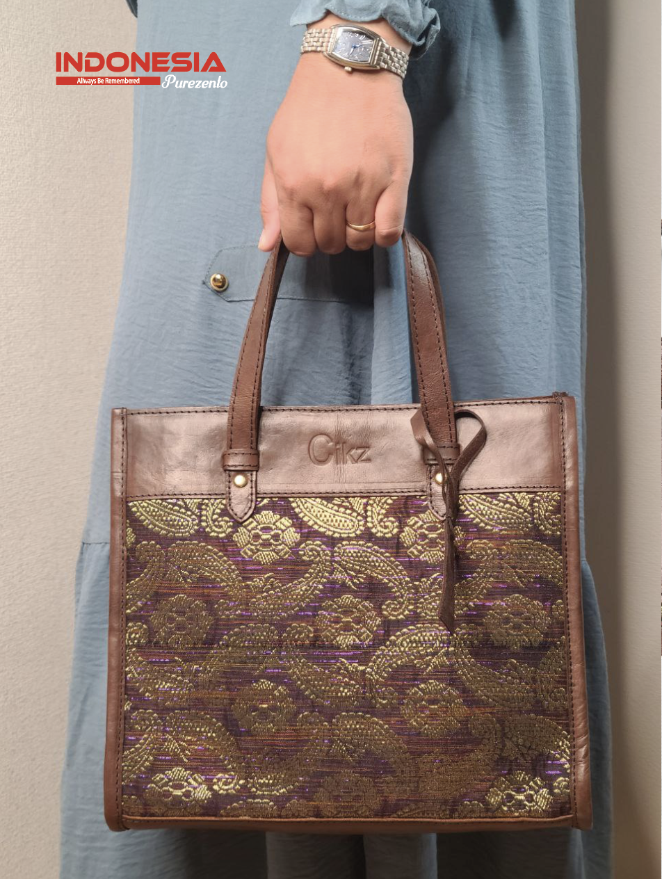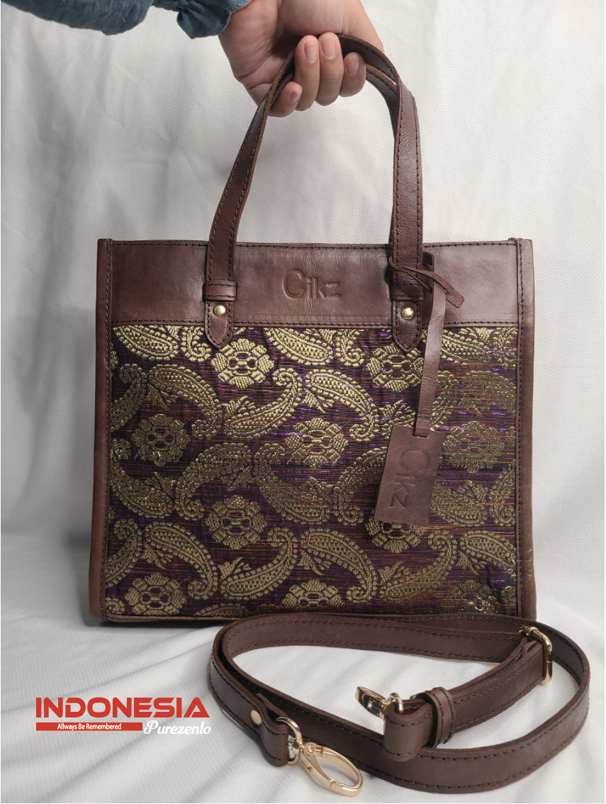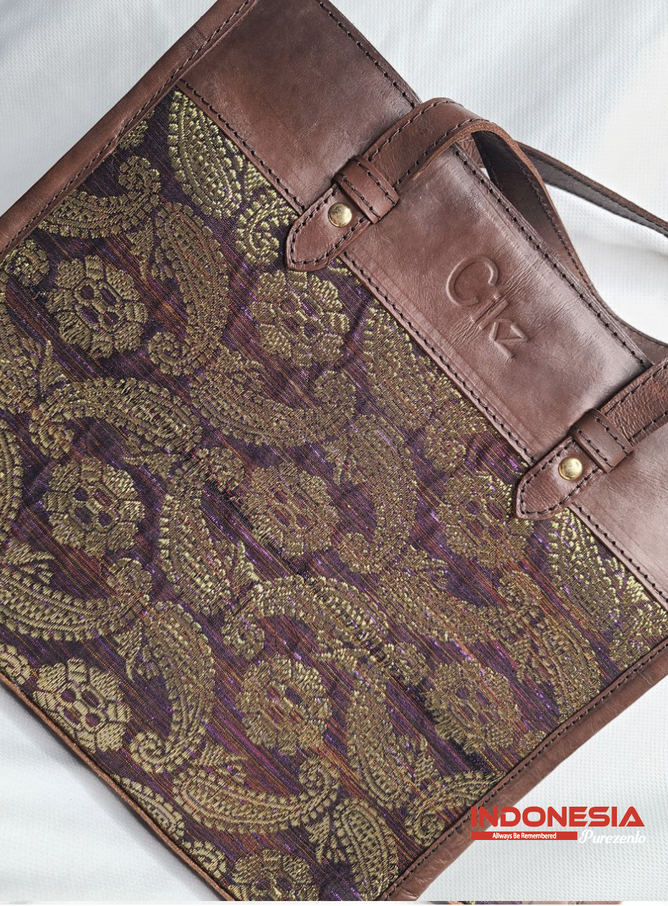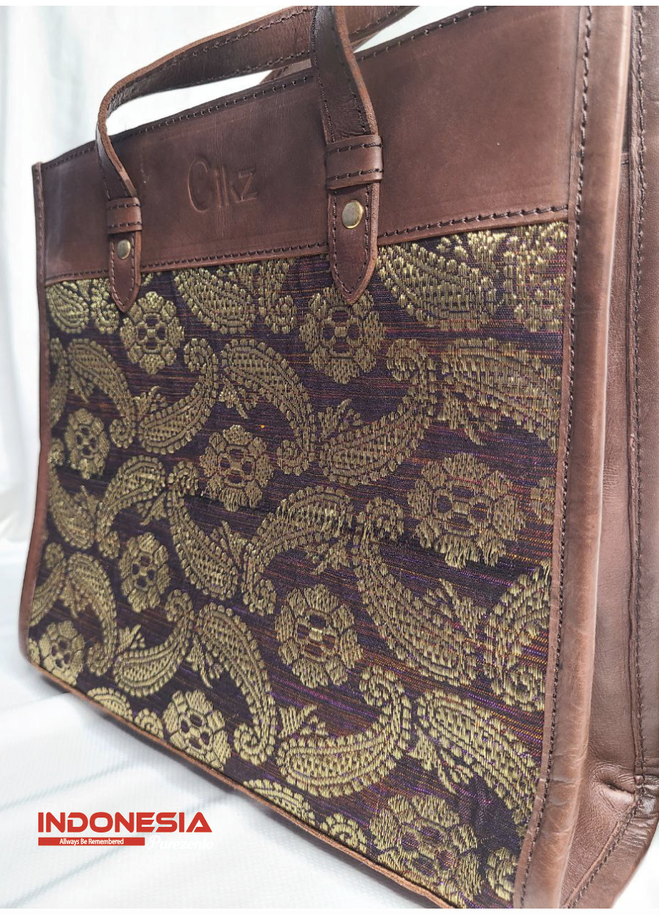 Tote Bag Kulit Kombinasi Tenun
