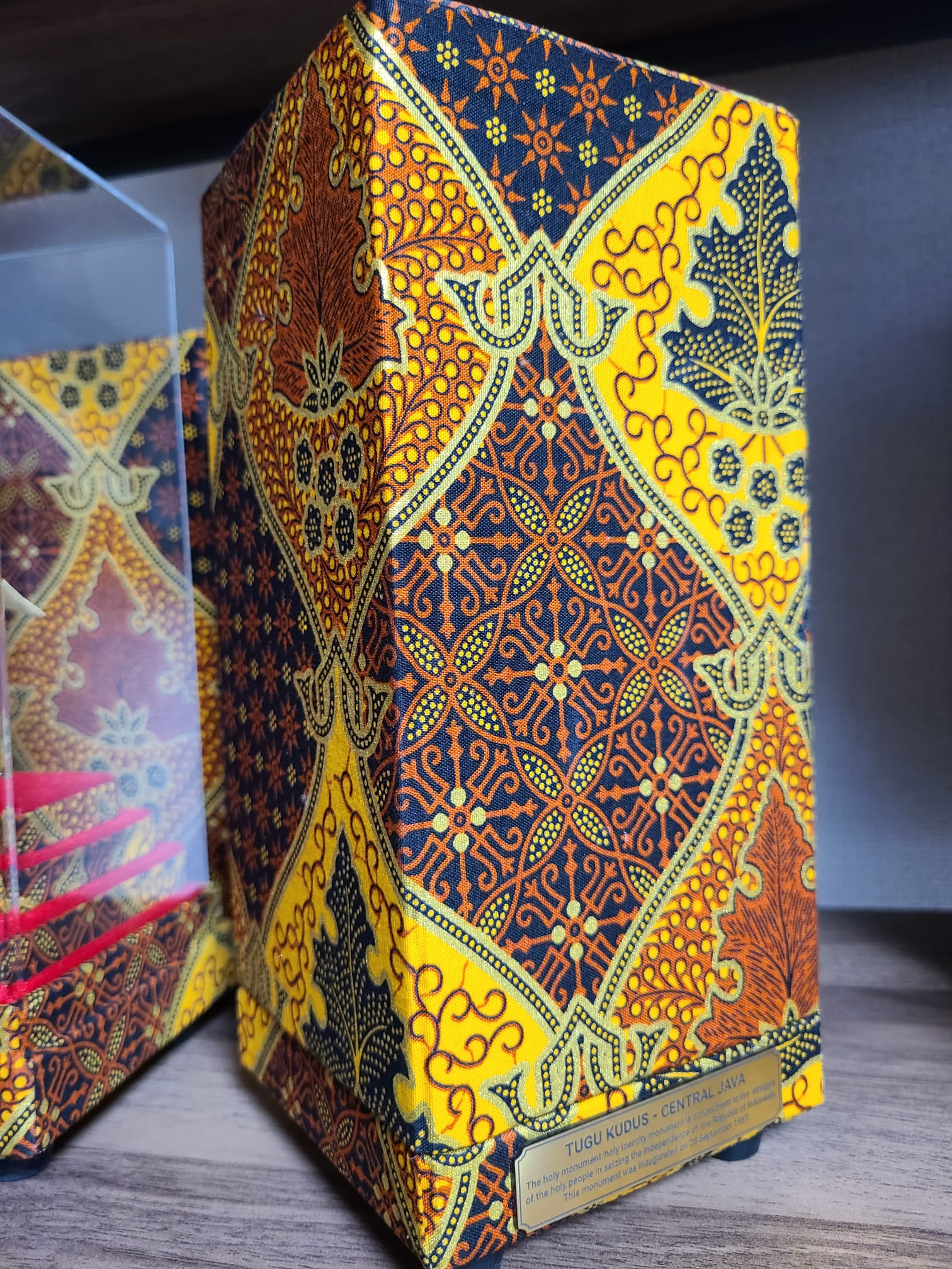 Terbuat dr bahan Kayu dan di Finishing dengan box akrilik dan di bungkus deng Batik Khas indonesia sehingga mengesankan Cindramata yang mewah dan elegan.
