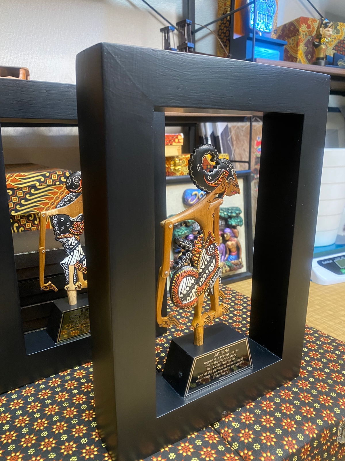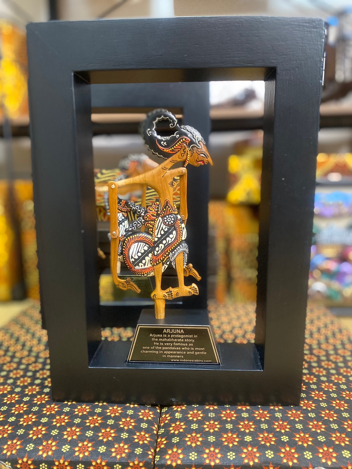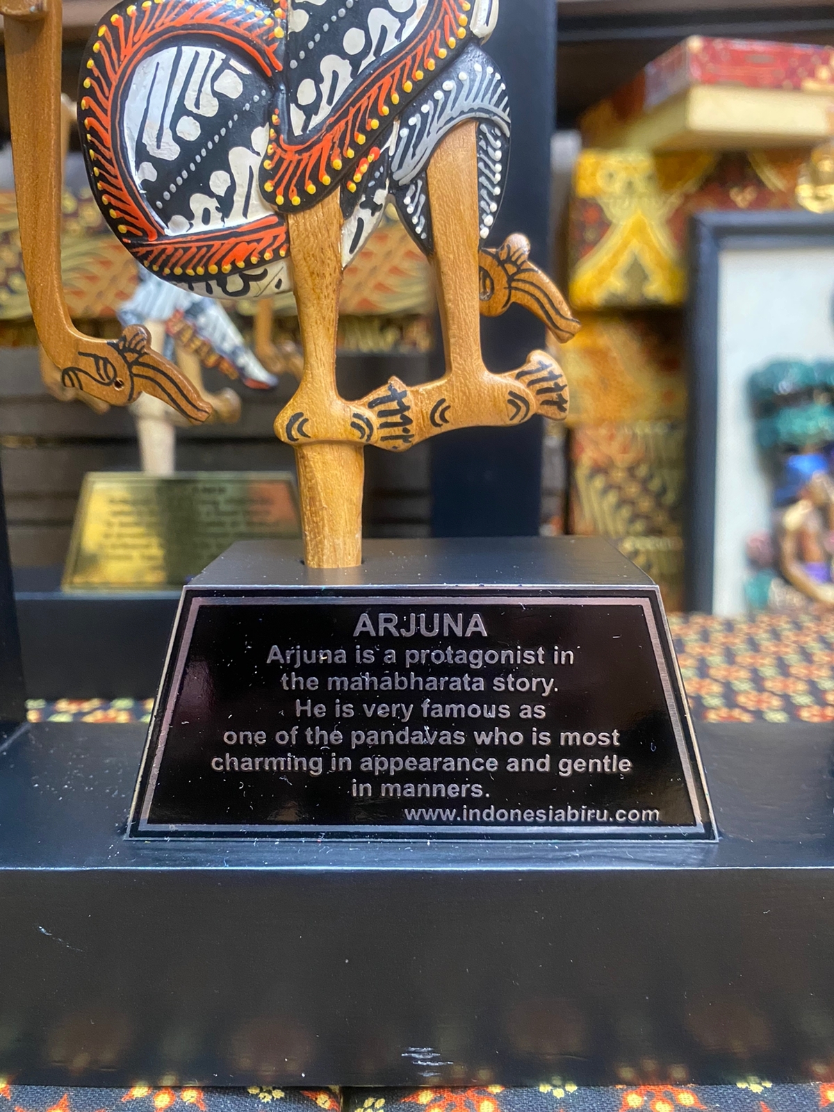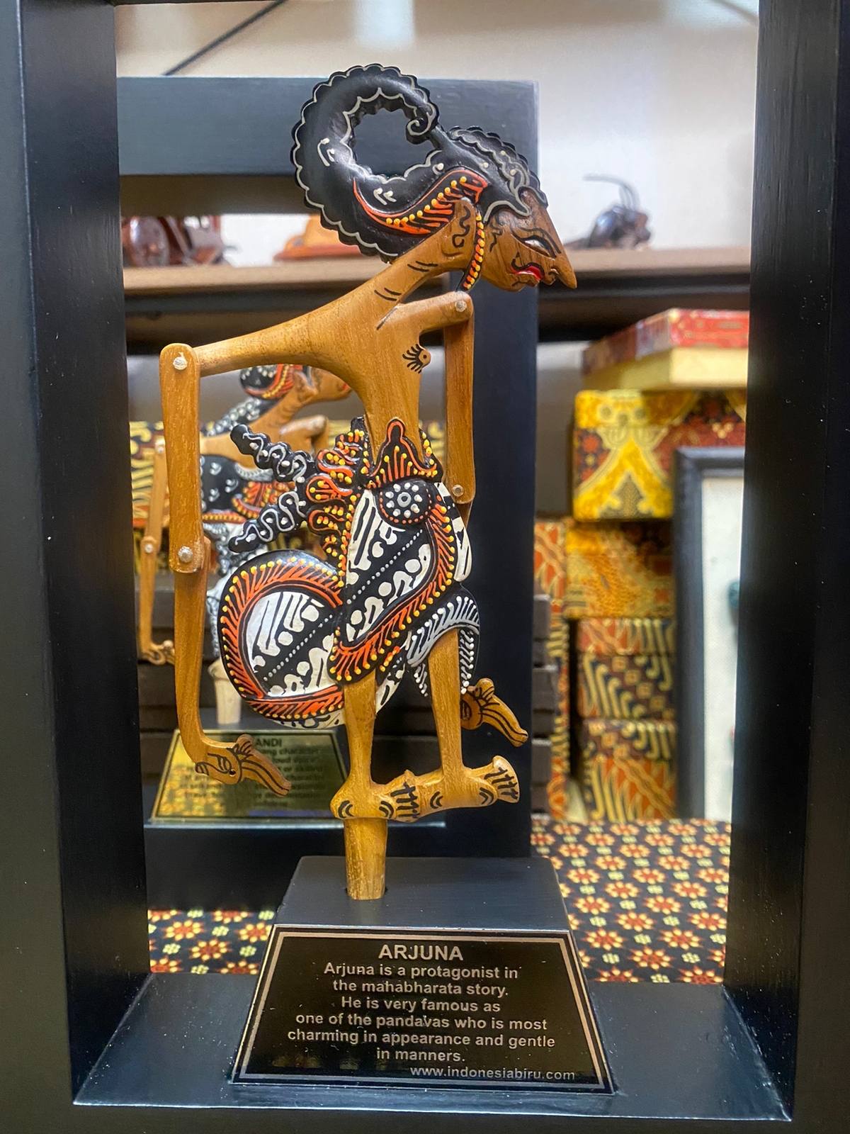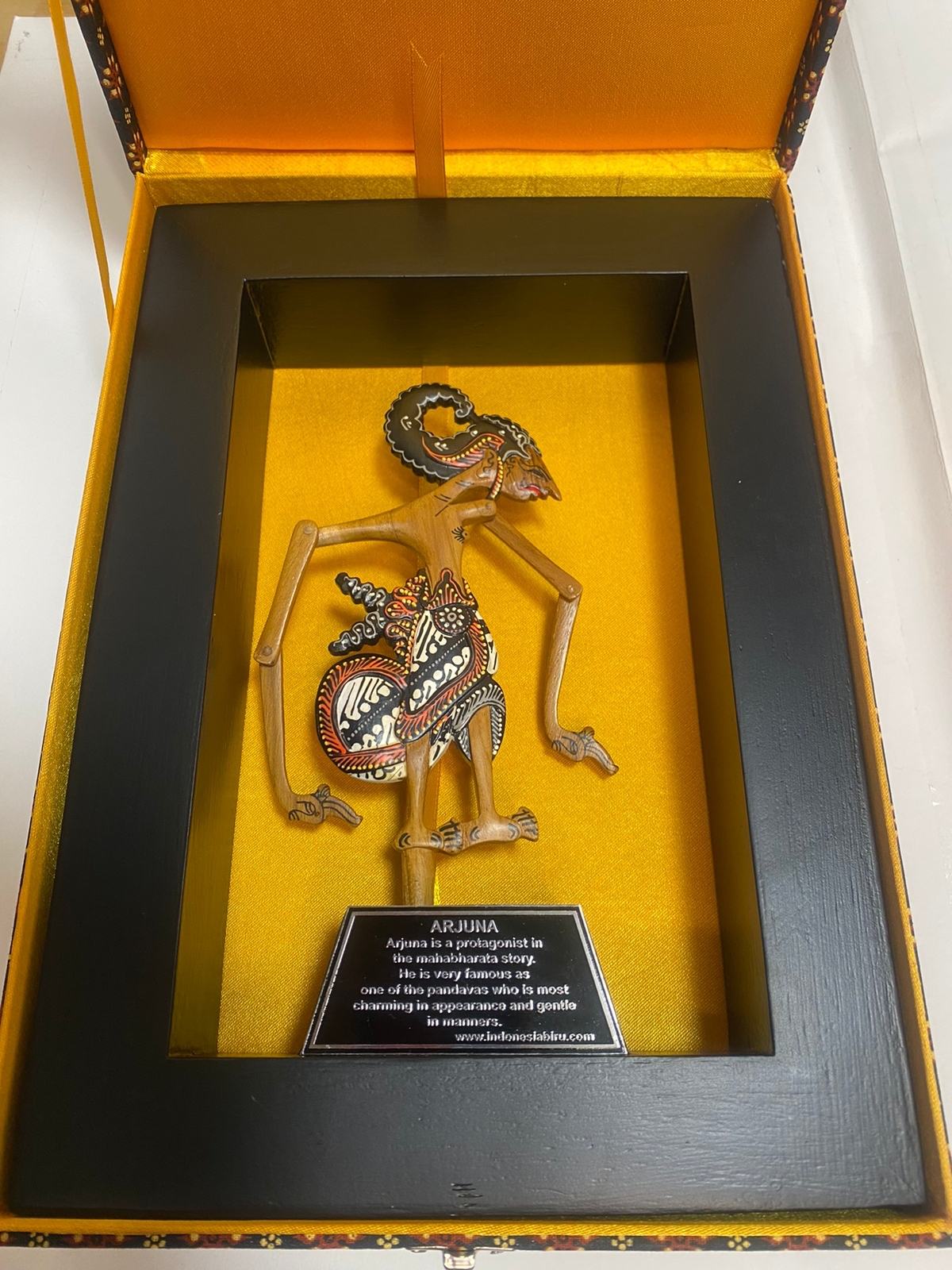 Wayang Kayu Exlusive Terbuat dari full kayu jati dengan finishing. sehingga wayang menjadi pruduc yang sangat bagus dan elegan. dengan balutan box batik khas jogja sehingga semakin elegan dan exlusive. wayang dilengkapi dengan plat penjelasan wayang dan juga bisa juga di tambahkan costum tulisan sendiri.